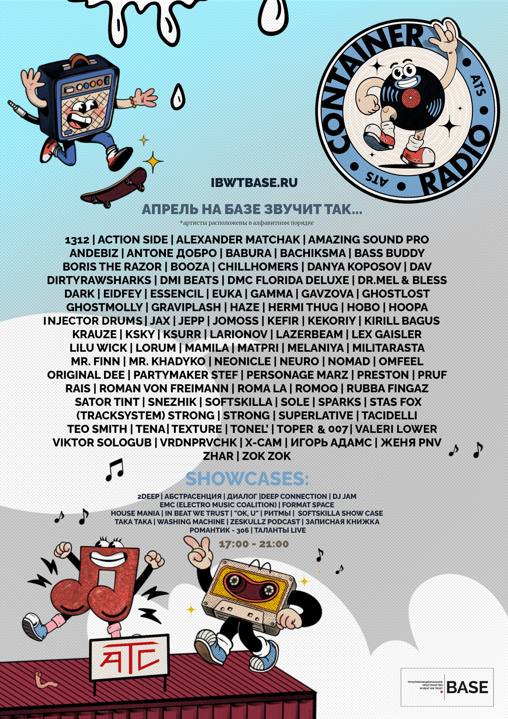 Диджей-сеты и подкасты от профессионалов, таких как Lady Waks, Lovesky, Bagus, Zok Zok, dj Slon, а также множество молодых и талантливых резидентов электронной сцены.